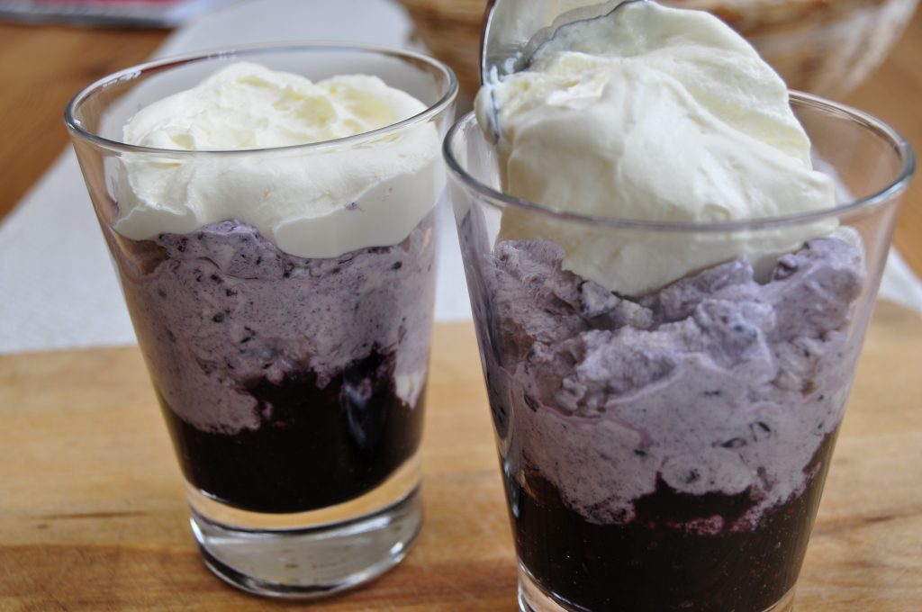 Start to layer your fools by spooning in the remaining 2/3 of fruit into the bottom of your serving dishes then carefully spoon in the fruity cream to make the next layer