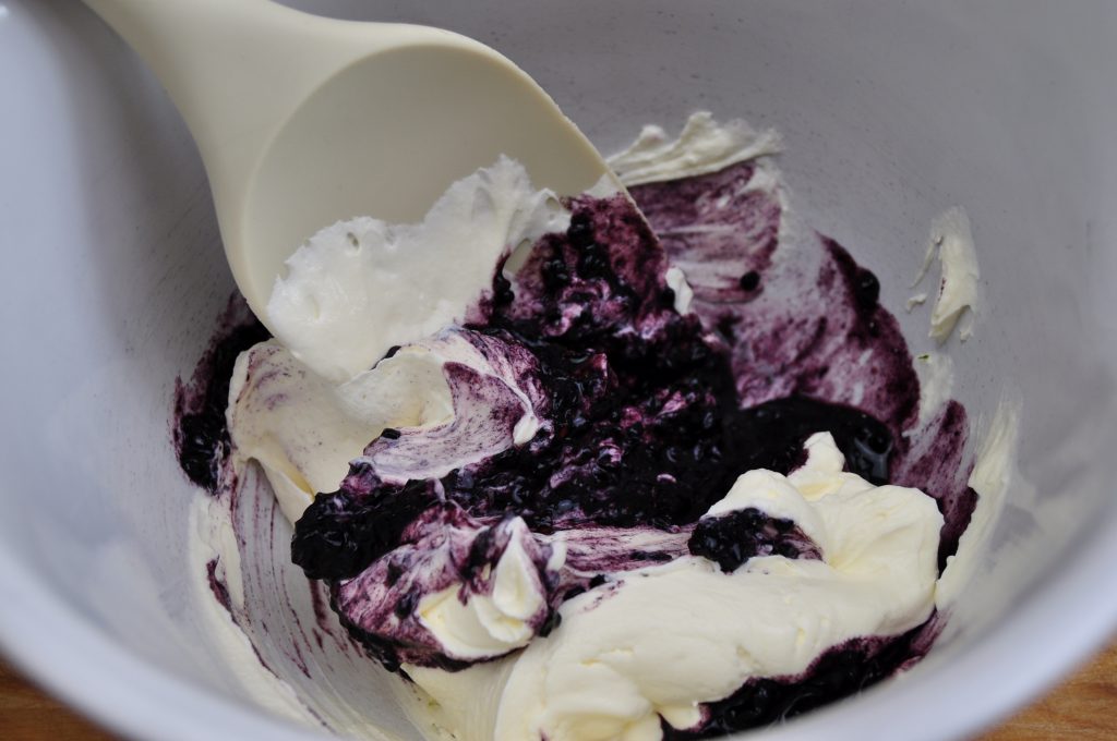 Fold the cream, yoghurt and vanilla essence together then use a whisk to whip to soft peaks – don’t over beat