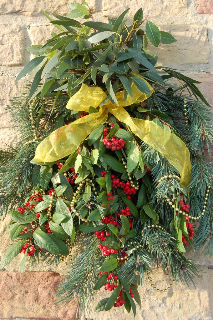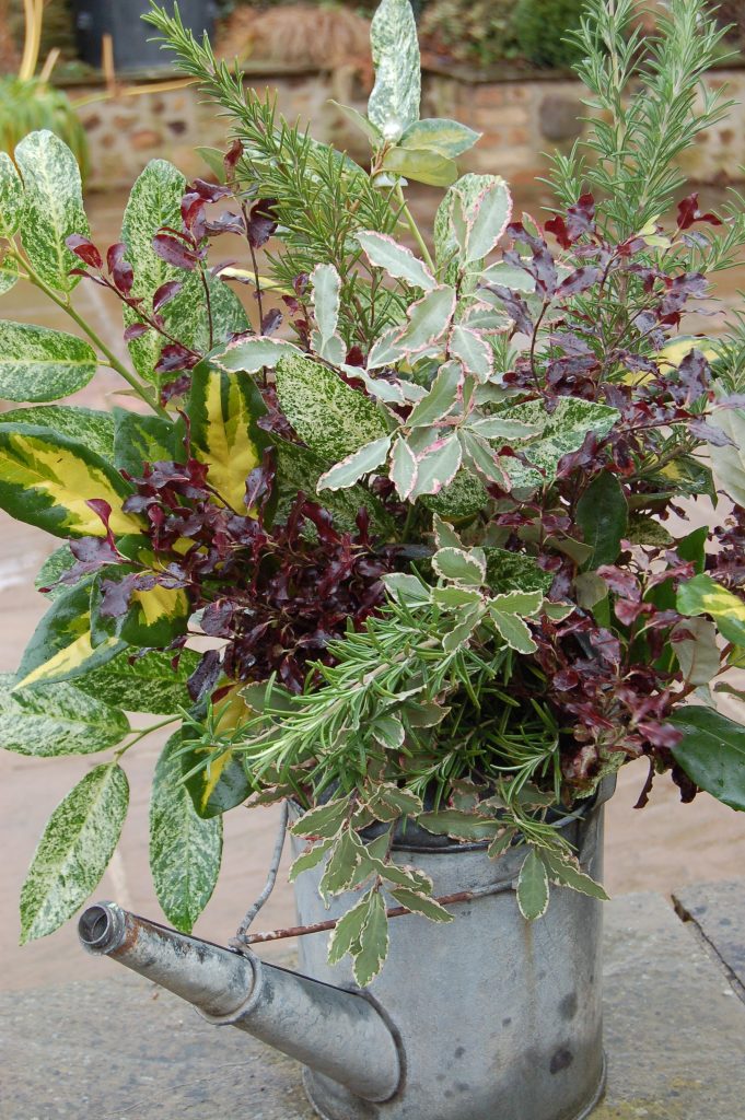 Evergreen foliage from the garden can be used to make lovely, natural decorations in the house over the festive period.  Just like cut flowers, after cutting, stand the stems in water in a cool place overnight to charge up with water and then arrange and enjoy.
