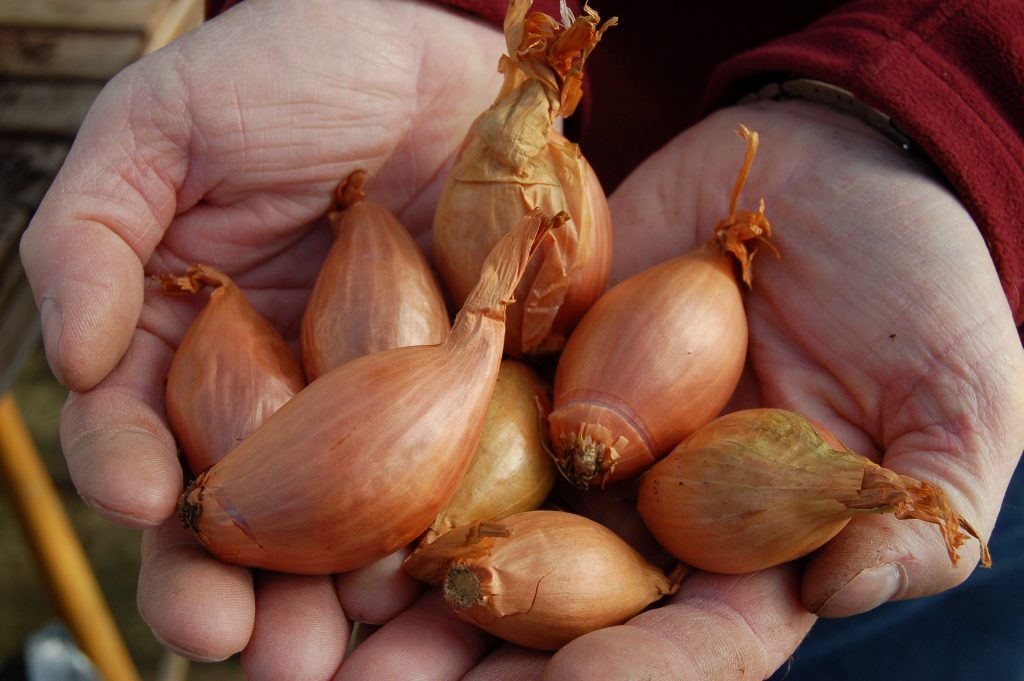 Shallots can be planted directly into the garden. Plant the small bulbs approximately 15cm (6in) apart with the tip of the bulb just above soil level.