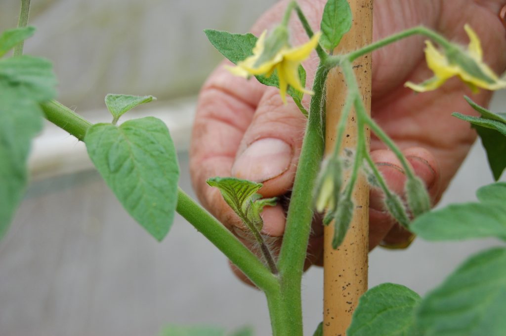 Tomatoes need side shooting regularly to remove the shoots that grow in the leaf joints and once the first fruits have set, feed weekly with a high potash liquid fertiliser.