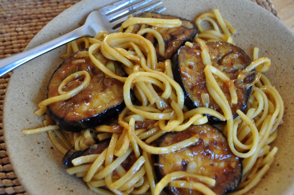 - Serve immediately with the aubergine slices mixed into the noodles. Alternately you could serve them separately with lots of sauce to drizzle over the noodles!